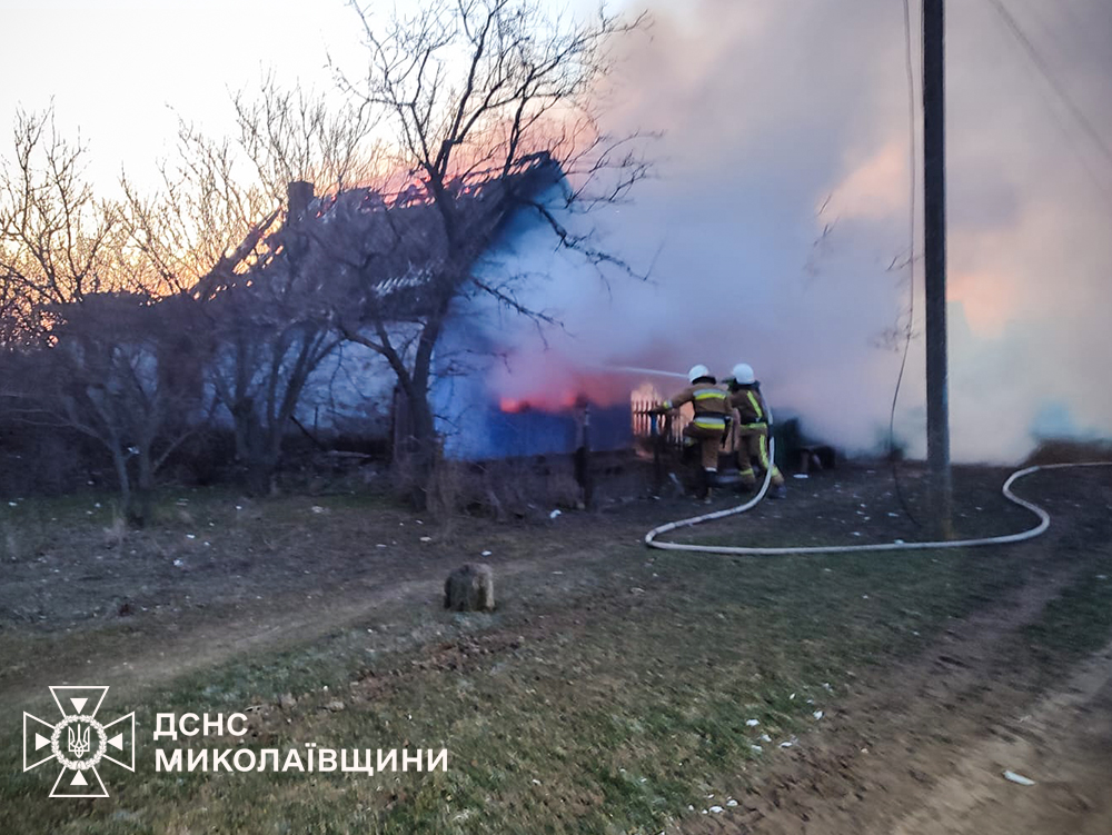 • у селі Костянтинівка Вознесенського району горіли дах приватного будинку на площі десять квадратних метрів та літня кухня на приватній території площею шістдесят квадратних метрів;