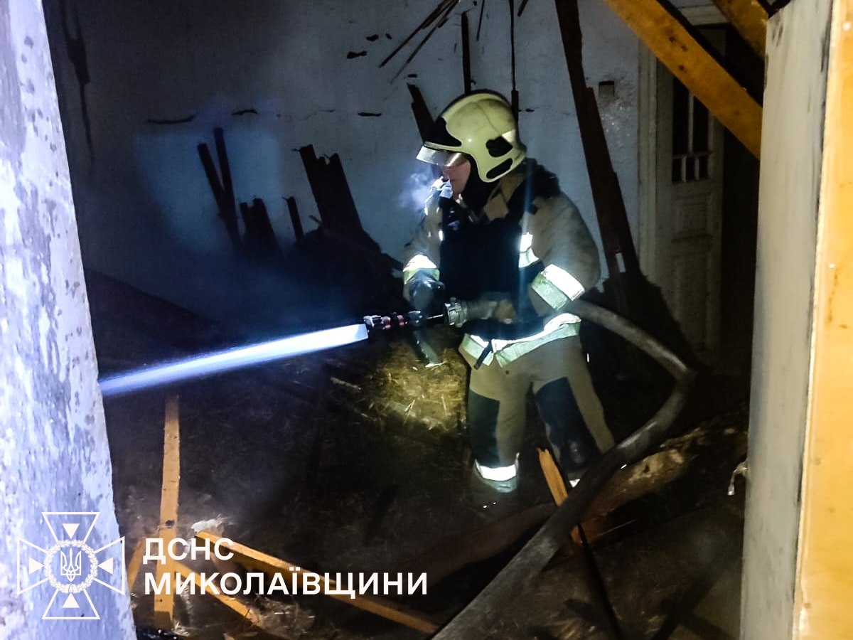 Пожежа у приватному будинку в Миколаєві через обстріл. Фото: ДСНС МиколаївщиниПожежа у приватному будинку в Миколаєві через обстріл. Фото: ДСНС Миколаївщини