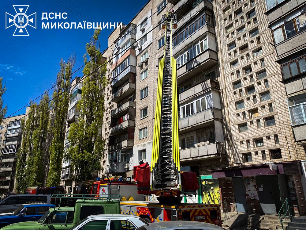 У Корабельному районі Миколаєва загорівся балкон квартири на сьомому поверсі дев’ятиповерхівки. Вогнеборці за допомогою автодрабини врятували 62-річну жінку. Після огляду медиків госпіталізація їй не знадобилася.
