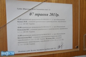 Во вторник, 7 мая, в здании суда Центрального района Николаева под председательством судьи Юлии Шереметы началось рассмотрение уголовного производства по обвинению николаевцев Юрия Богомятко и Дмитрия Волкова в том, что они избили до смерти николаевского дальнобойщика Олега Шевчука.