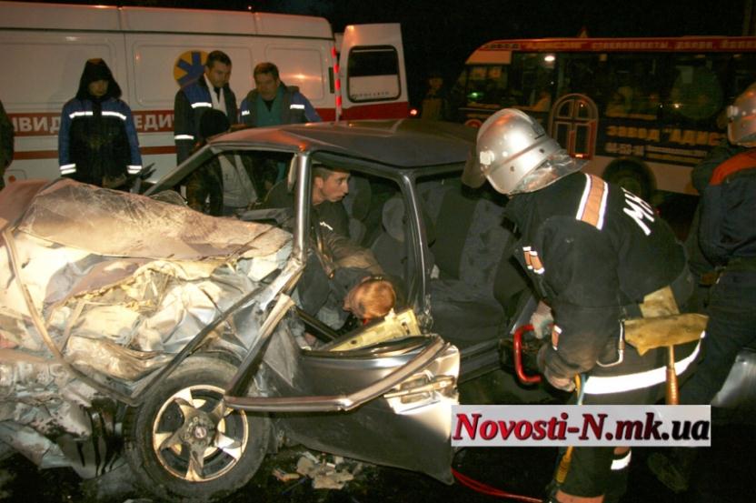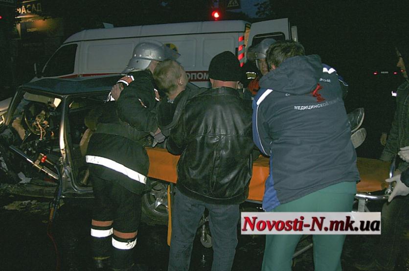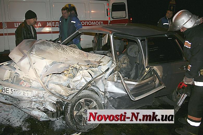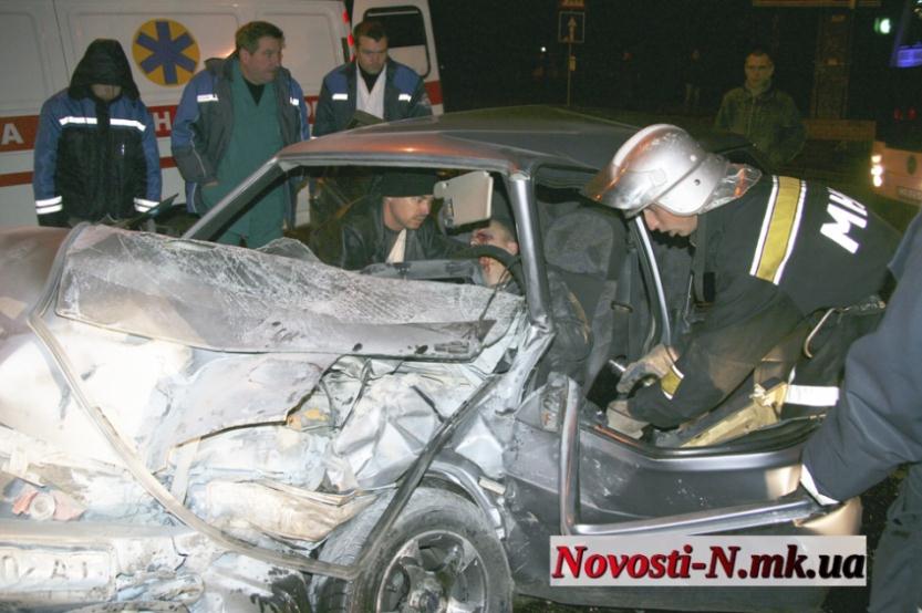 Водитель в центре Николаева после лобового столкновения чуть не сгорел заживо в автомобиле