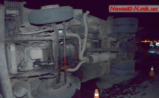Сегодня вечером, на кольце возле села Мешково-Погорелово перевернулся седельный тягач «Мерседес» с полуприцепом.