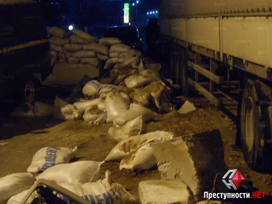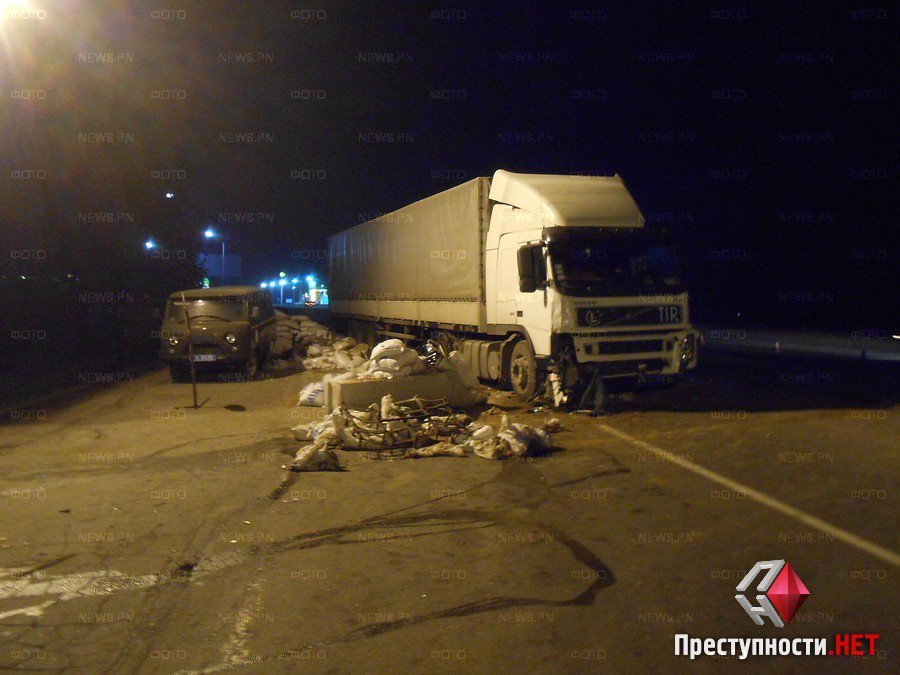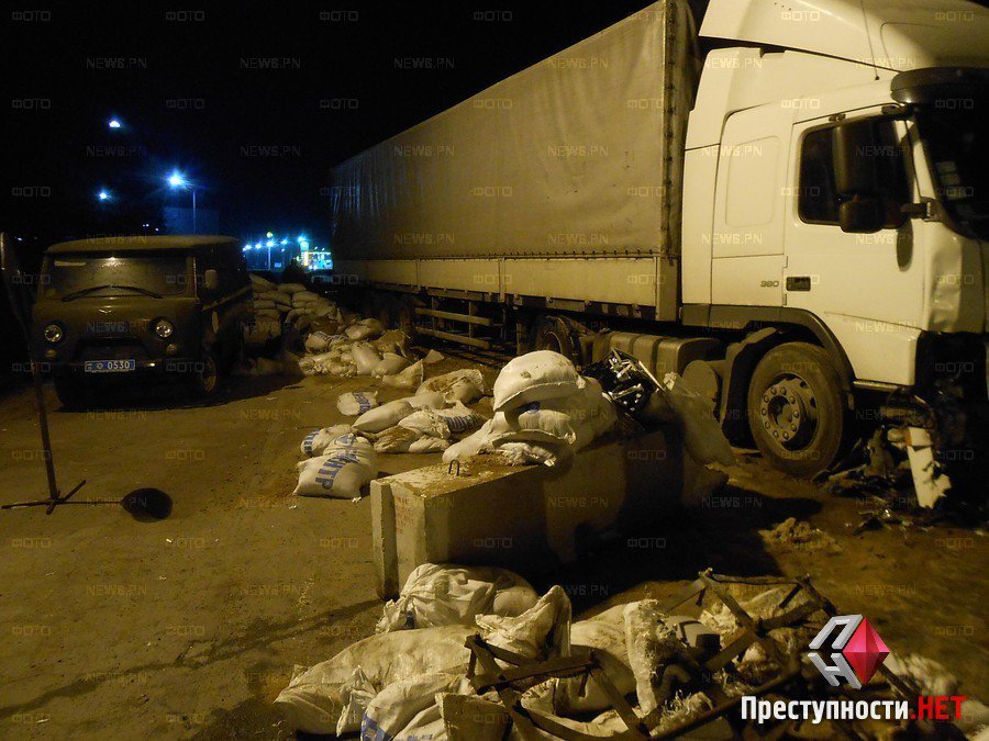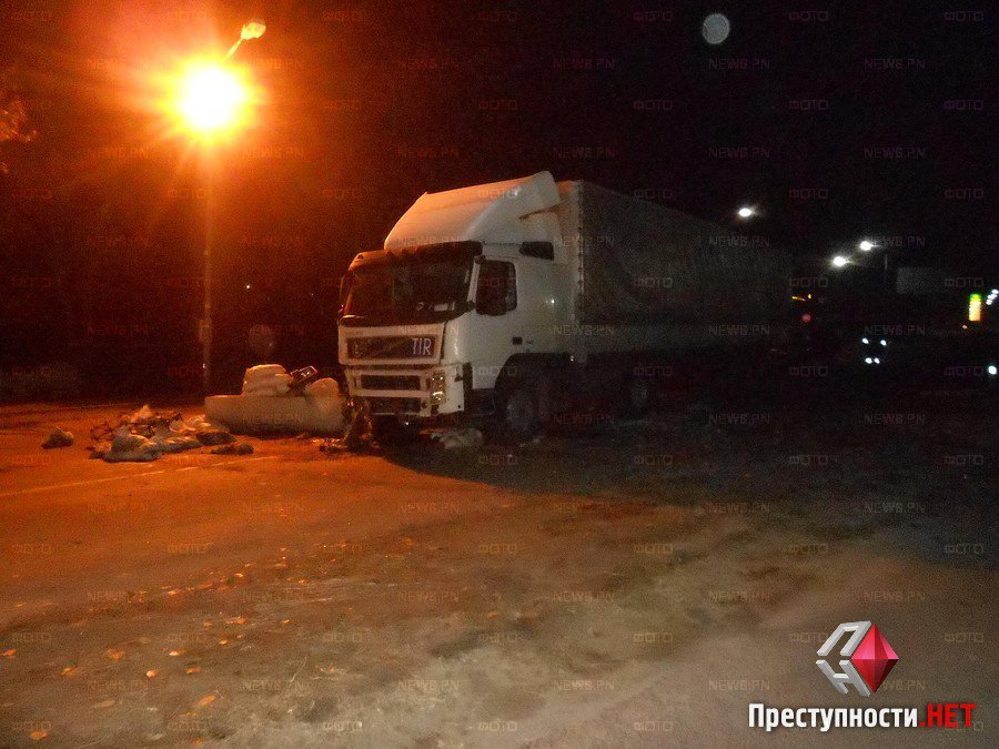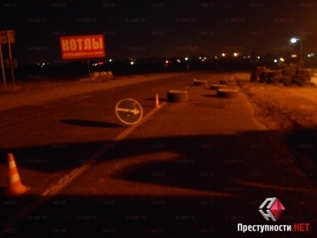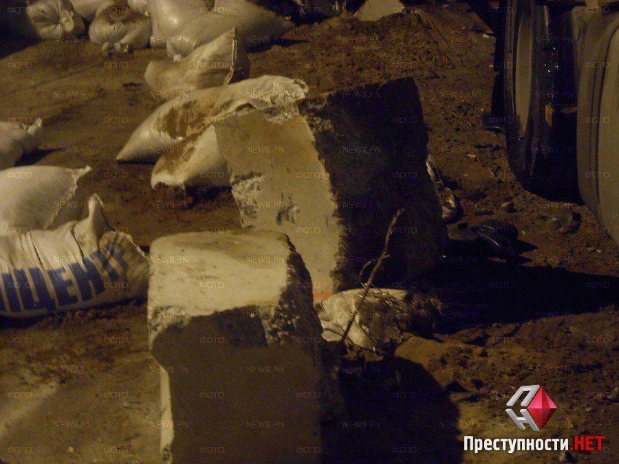 Вечером в воскресенье, 2 ноября, приблизительно в 20:30 на въезде в Николаев со стороны поселка Мешково-Погорелово седельный тягач «Volvo», перевозивший алкоголь, въехал в блокпост, оборудованный на проезжей части.