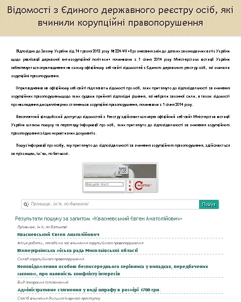 Мэра Южноукраинска Евгения Квасневского внесли в Единый государственный реестр лиц, совершивших коррупционные правонарушения.