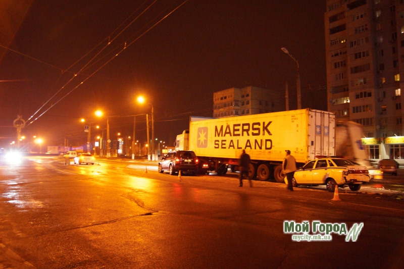 В среду, 26 ноября, в районе 9 часов вечера в Николаеве на проспекте Героев Сталинграда, на выезде из города возле «Терновского» кольца, произошло ДТП с участием пяти автомобилей: «BMW», «Mercedes-Benz», «Таврия-Нова», «Лады-110» под управлением сотрудников ГАИ и тягача «DAF».