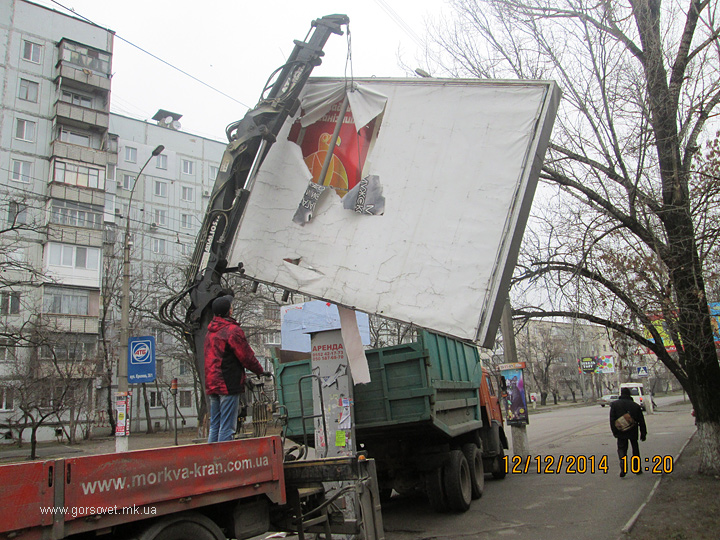 12 декабря администрация Заводского района провела принудительный демонтаж пяти незаконно размещенных рекламных средств.