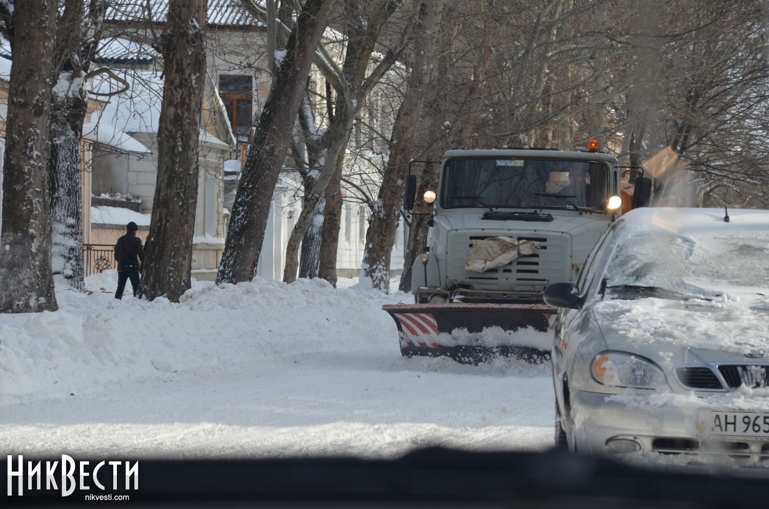 По информации службы автомобильных дорог в Николаевской области и УГАИ УМВД Украины, на дорогах государственного и местного значения работает 17 единиц техники и 23 работника. В режиме дежурства находятся 50 единиц техники и 69 работников.