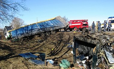 Сегодня утром в Полтавской области на 375 км автодороги Киев-Харьков около поселка Зеленковка в результате столкновения фуры со встречным маршрутным микроавтобусом погибли семь человек.