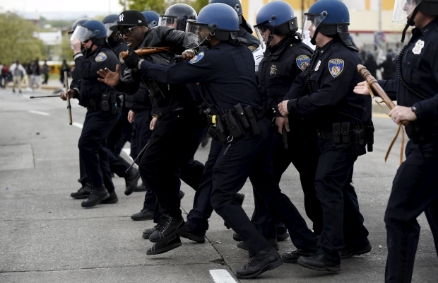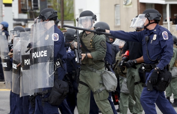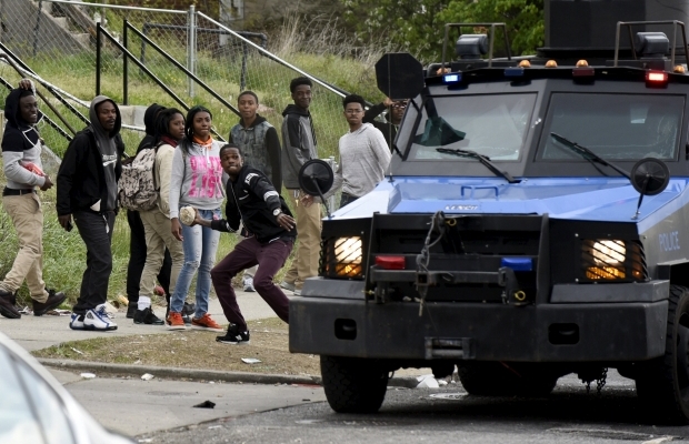 Вследствие уличных столкновений в Балтиморе в понедельник разные ранения получили как минимум 15 охранников правопорядка.