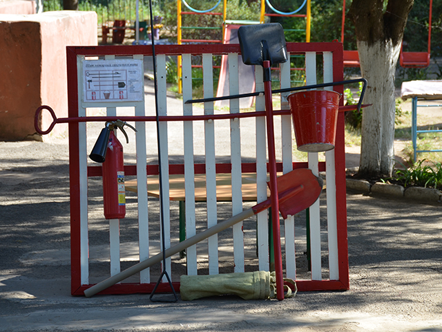 Что такое пожарный щит, для чего он предназначен и как используют первичные средства пожаротушения - вопросы, на которые спасатели обратили внимание детей.