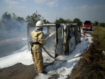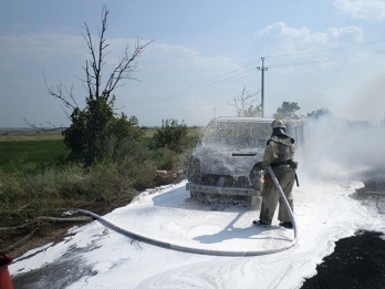 На место происшествия срочно выехал дежурный караул 24-й Государственной пожарно-спасательной части. По прибытию было установлено, что владелец автомобиля пытался самостоятельно потушить пожар, однако действенных результатов это не дало, огонь распространился очень быстро и за считанные минуты охватил весь автомобиль и перекинулся на сухую траву на обочине трассы.