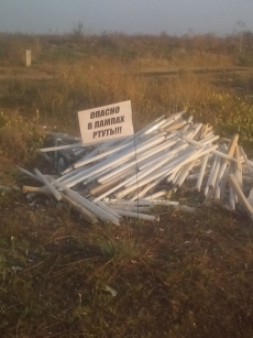 Из-за бездействия муниципалитета активисты установили на месте свалки таблицы и знаки, несущие в себе информацию об опасности и вреде этого бытового предмета.