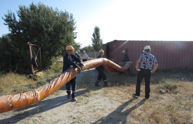 На государственном предприятии «Специализированный морской порт «Октябрьск» состоялись тренировки по локализации разлива нефтепродуктов.