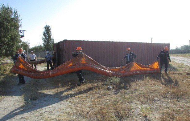 В николаевском порту «Октябрьск» спасатели тренировались предотвращать разлив нефти