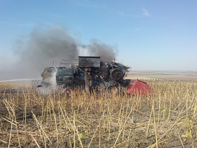 20 сентября в 15:00 на пункт связи 14-й Государственной пожарно-спасательной части поступило сообщение о пожаре комбайна Дон-1500, который находился на открытой территории вблизи села Зеленый Яр Доманевского района Николаевской области.