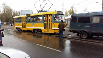 В Николаеве водитель «Газели» заблокировал трамваи, припарковав на рельсах свое авто