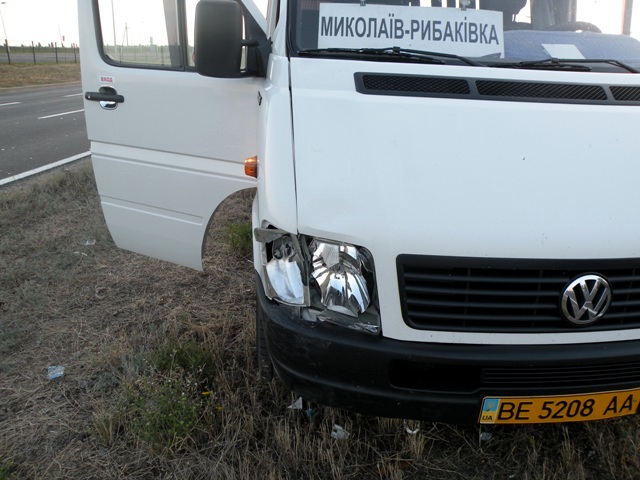Водитель мопеда Honda, двигаясь со стороны Одессы по направлению к Николаеву, во время перестраивания не убедился в том, что транспортные средства на полосе, на которую он собирался выезжать, находятся на безопасном расстоянии. Во время выполнения маневра мопед врезался в рейсовый автобус Volkswagen LT 35, который ехал из Рыбаковки в Николаев. В салоне автобуса находилось 12 пассажиров. К счастью, после столкновения никто из пассажиров не пострадал, их пересадили на другой автобус, который и доставил их в Николаев.