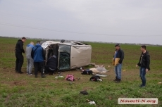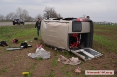Сегодня, 10 апреля, под Николаевом возле села Константиновка на трассе Р-06 «Николаев-Ульяновка» слетел с дороги и перевернулся автомобиль «Fiat Doblo».