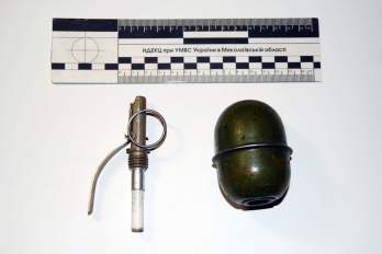Во время поверхностного осмотра правоохранители обнаружили у задержанного мужчины гранату РГД-5 и нож, которые были направлены на исследование в Николаевский научно-исследовательский экспертно-криминалистический центр МВД Украины.