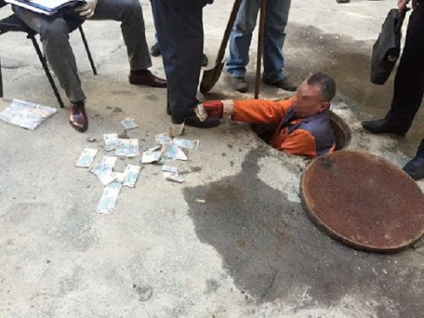 В Киеве подозреваемый во взяточничестве налоговик выбросил меченные купюры в канализацию