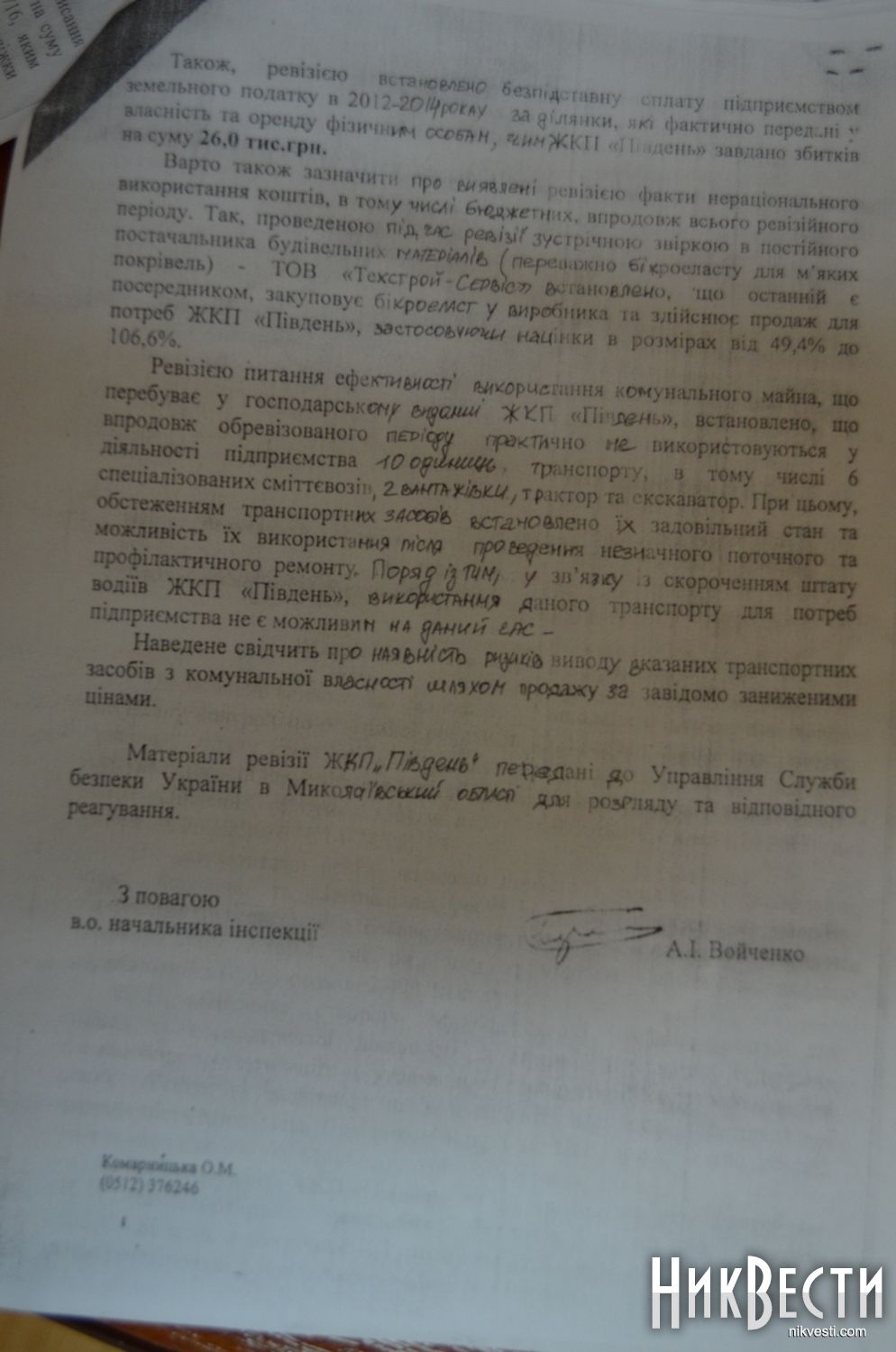 Стоит отметить, что материалы ревизии ЖКП «Південь» переданы в управление Службы безопасности Украины в Николаевской области для соответствующего реагирования.