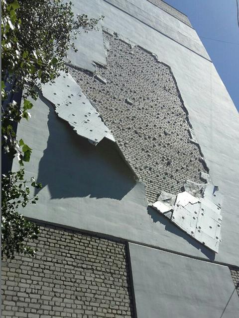 В Николаеве кусок утеплителя едва не сорвался со стены многоэтажки прохожим на головы
