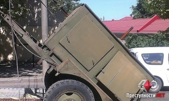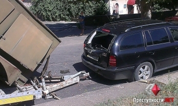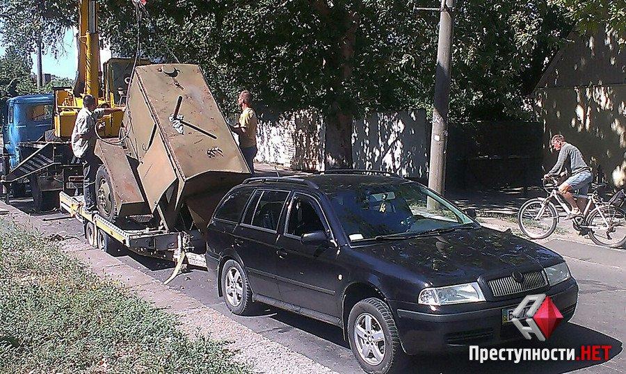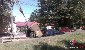 В Николаеве съехавший с платформы дизельный генератор повредил легковушку
