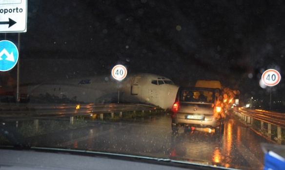 В аэропорту города Бергамо (Италия) грузовой самолет Boeing 737-400 выехал за пределы взлетно-посадочной полосы (ВПП) на дорогу.