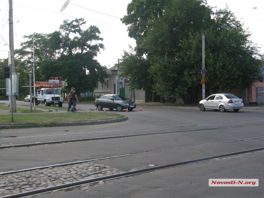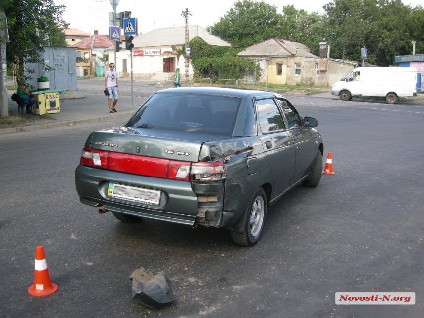 Днем в понедельник, 15 августа, на пересечении улиц Скороходова и Малой Морской в Николаеве столкнулись грузовой автомобиль КамАЗ с прицепом и легковушка ВАЗ-2110.