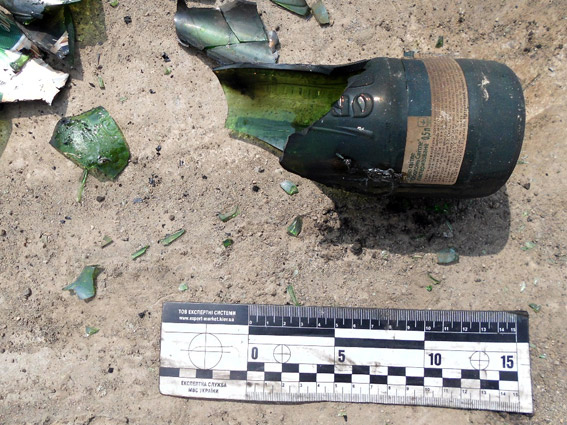Правоохранители обследовали место происшествия, изъяли части бутылок с остатками неизвестного вещества и направили их в Николаевский экспертный центр.