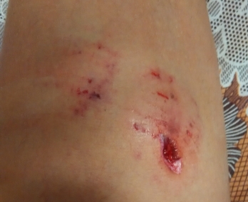 - 25 августа я в 20:30 вечера выходил из дома в магазин. Дойдя буквально до соседнего дома по улице Металлургов, 8 во дворе наткнулся на стаю дворовых собак, которая постоянно у нас обитает! Они просто лежали. Я пытался их немного обойти стороной, на сколько позволяла дорога. В момент, когда я их немного прошел и они оказались у меня за спиной, в количестве шести штук они начали на меня лаять и подбежали ко мне (изначально скажу: привлекать их внимания у меня в мыслях не было!!!). Одна из маленьких собак укусила меня за левую ногу. От небольшой растерянности и отходя назад, не увидел, как справа на меня кинулась большая собака и укусила уже намного сильней за правую ногу, - рассказал пострадавший.