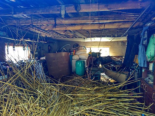 На место выехал дежурный караул 1 государственной пожарно-спасательной части по охране Центрального района города. По прибытию было установлено, что крыша гаража проложена камышом и происходит его тление.