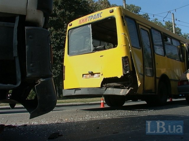 В Киеве грузовик протаранил маршрутку с пассажирами