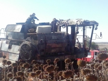На Николаевщине комбайн загорелся во время уборки подсолнечника