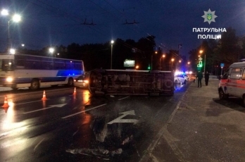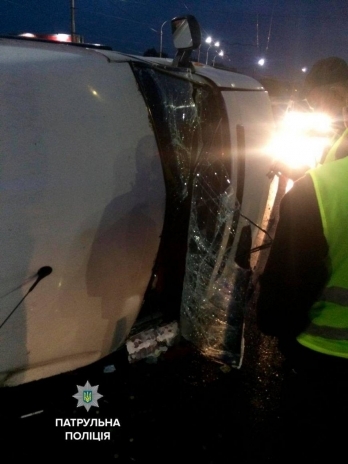 По информации главы Независимого профсоюза медиков скорой помощи Анатолия Сидоренко, маршрутка №75 перевернулась возле остановки общественного транспорта при въезде на правый берег.