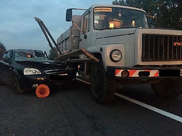 В сообщении сказано, что 58-летний работник дорожной службы умер на месте. Водитель Chevrolet Lacetti скончался в больнице. Трое пассажиров легковушки также госпитализировали.