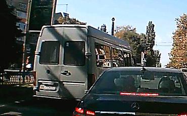 В Николаеве днем 30 сентября водитель маршрутного такси №8, микроавтобуса с номерами ВЕ7654ВІ допустил грубое нарушение правил дорожного движения – он проехал на красный свет через пешеходный переход и едва не сбил четырех человек.