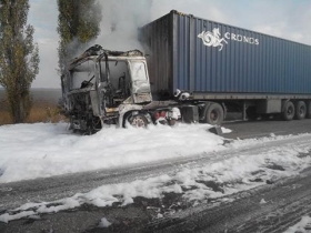 Во вторник, 4 октября, на трассе «Днепропетровск-Одесса», возле села Михайловка Казанковского района, загорелся грузовой автомобиль MAN.