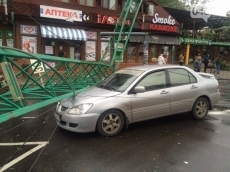 В одесской Аркадии утром в среду, 12 октября, строительный высотный кран упал на кафе, припаркованный рядом автомобиль Mitsubishi и автобус маршрута 168.