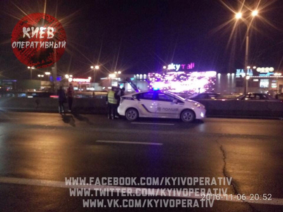Когда отец и сын перебегали проспект, в левом ряду их сбил автомобиль Daewoo, который двигался в сторону Троещины. От сильного удара тела перелетели на другую сторону, за отбойник, уточняет НБН.