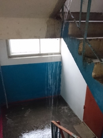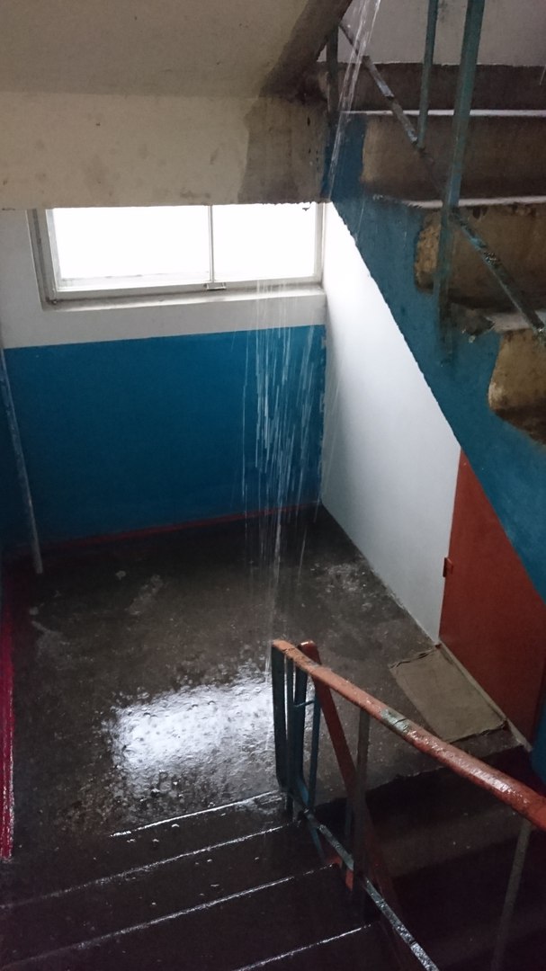 Сегодня, 8 ноября, подъезд многоквартирного дома по проспекту Мира оказался залит дождевой водой. Потоки воды стекают с 9-го на 1-й этаж.