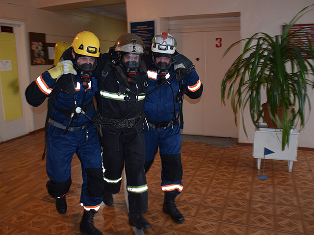 По тактическому замыслу мероприятия из-за короткого замыкания электропроводки в помещении терапевтического отделения лечебного корпуса возник пожар и произошло плотное задымление в коридорах с третьего по пятый этаж. На момент прибытия первого аварийно-спасательного подразделения площадь пожара составила 15 м2. В помещении ординаторской на третьем этаже терапевтического отделения осталось 3 сотрудника, которые оказались отрезаны от путей эвакуации.