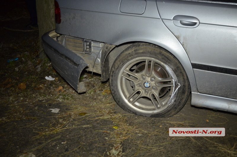 Повреждения, полученные «Фольксвагеном», были незначительны, однако водитель «БМВ» попытался скрыться с места происшествия. Он увеличил скорость и резко свернул с Большой Морской направо, на Никольскую. Впрочем, далеко уехать ему не удалось. Буквально через 300 метров, возле ДК Строителей, автомобиль занесло, он вылетел на тротуар и задним бампером врезался в дерево.