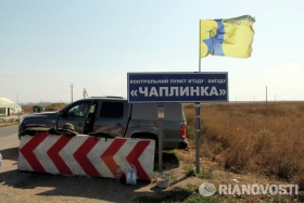 Водители автобусов неподалеку пункта пропуска «Чаплинка», на границе с временно аннексированным Крымом, высаживали пассажиров, которые потом пешком пересекали административную границу с полуостровом.