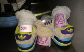 В ручной клади мужчины таможенники также обнаружили 182 тысячи евро: 60 тысяч евро были свернуты в трубочку и спрятанные внутри мужского носка, в другом носке было еще 60 тысяч евро, а в третьем - еще 62 тысячи евро.