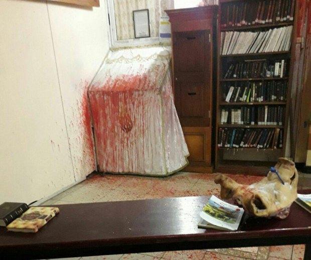 Погромщики оставили в помещении свиную голову с вырезанной на ней свастикой, пишет Левый берег.