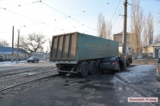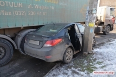 Фура в Николаеве «зажала» легковушку между прицепом и столбом