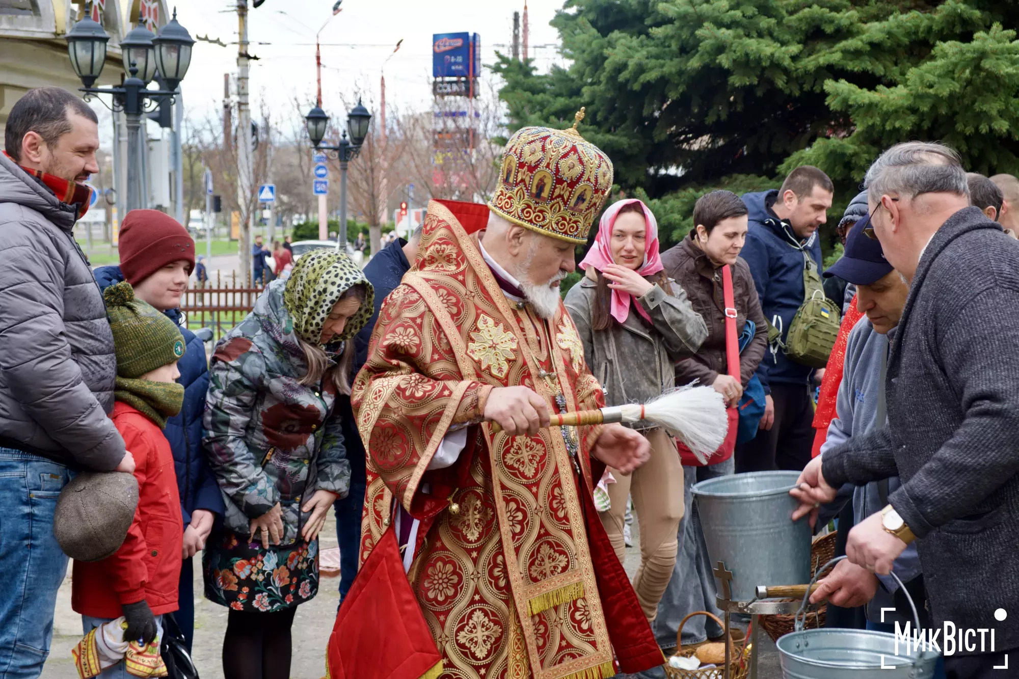 Із самого ранку тисячі містян вирушили до храмів, аби освятити великодні кошики та помолитися за мир. Біля храмів чергували поліцейські, допомагаючи координувати потік вірян і дотримання порядку.
