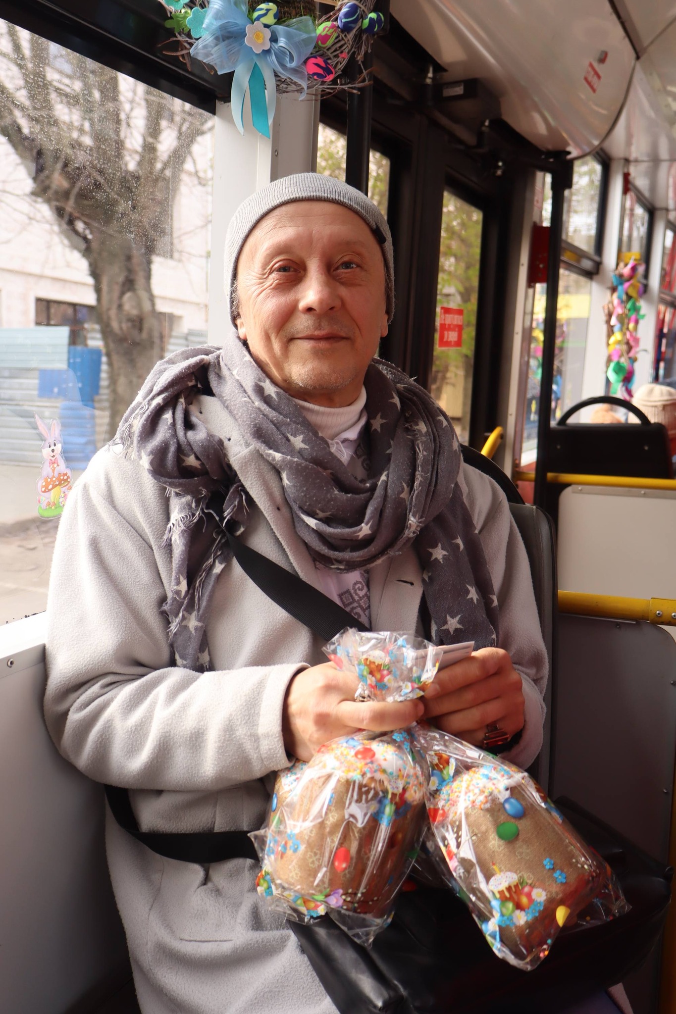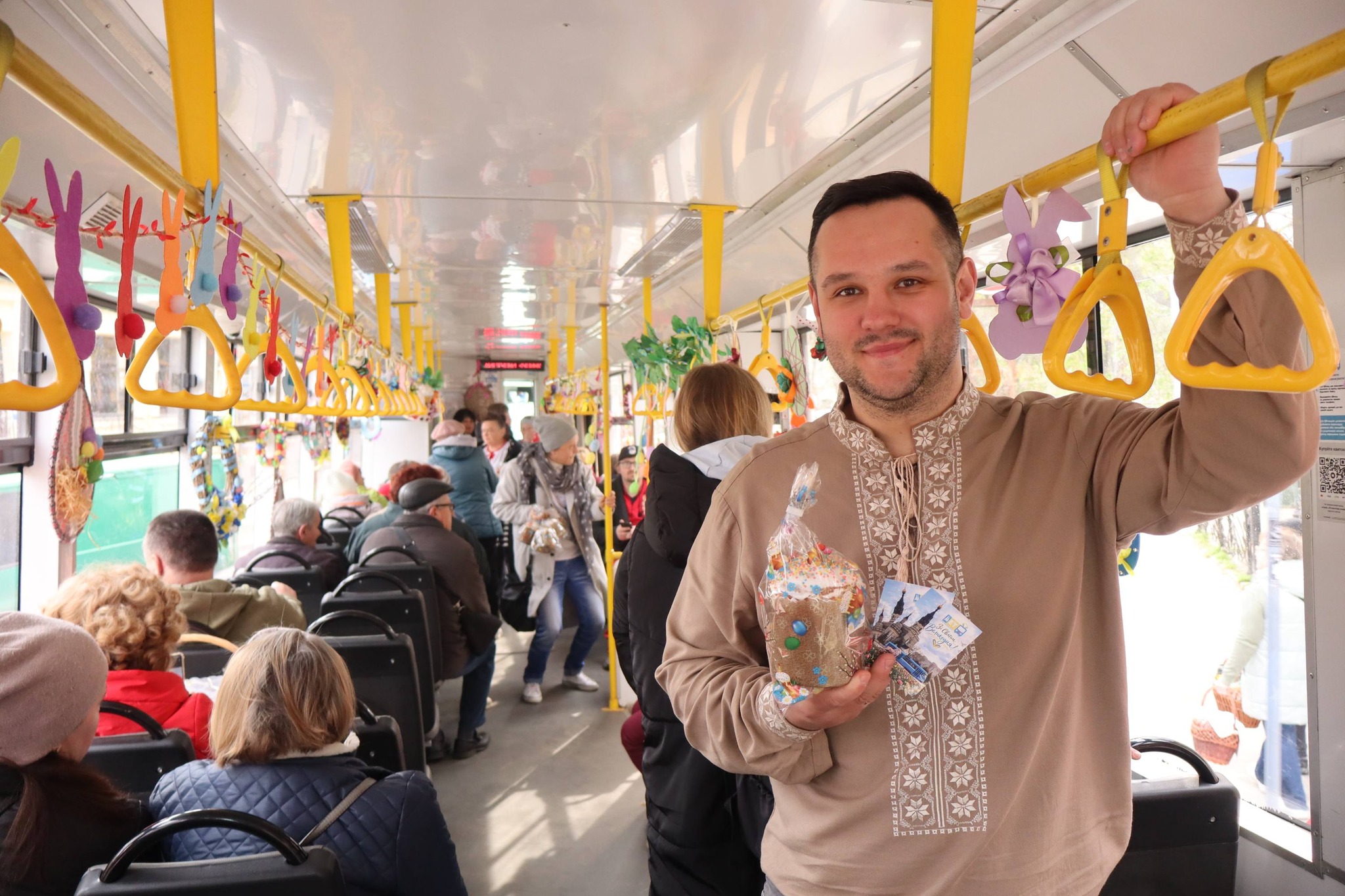 У Миколаєві на Великдень запустили святковий трамвай: пасажирам дарували паски