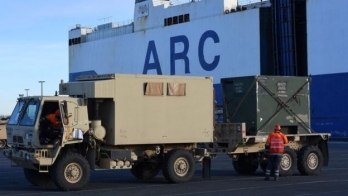 В немецком порту Бремерхафен идет разгрузка сотен танков, самоходных гаубиц и других военных машин, которые прибыли в Германию морем из США.